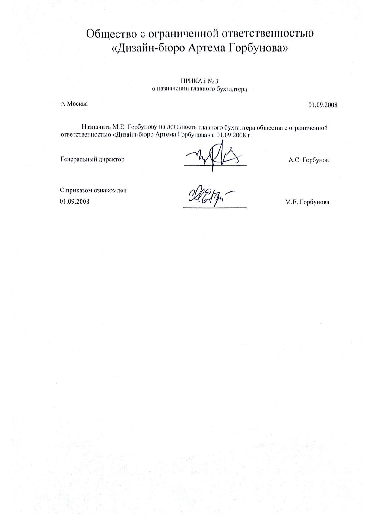 Приказ о назначении главбуха