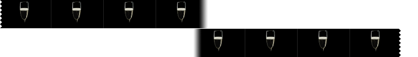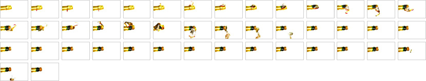И так далее, пока не доберёмся до пробки. На всякий случай шаги между кадрами делаем мельче — убрать лишнее всегда успеем. Получается девяносто кадров. Пролистываем анимацию и избавляемся от лишних — слишком частых, невыразительных или не попадающих в ритм. В итоге остается сорок четыре кадра: |