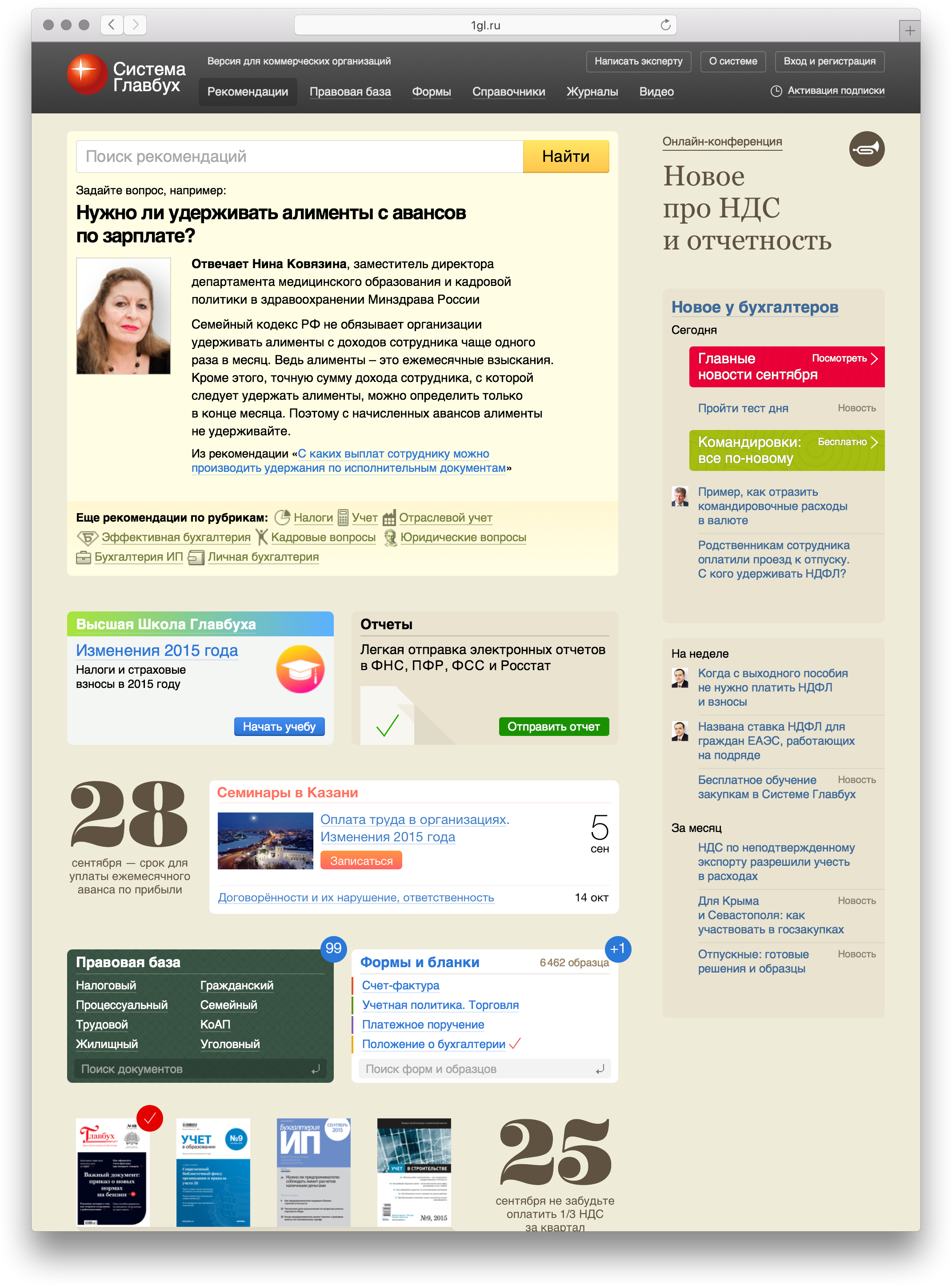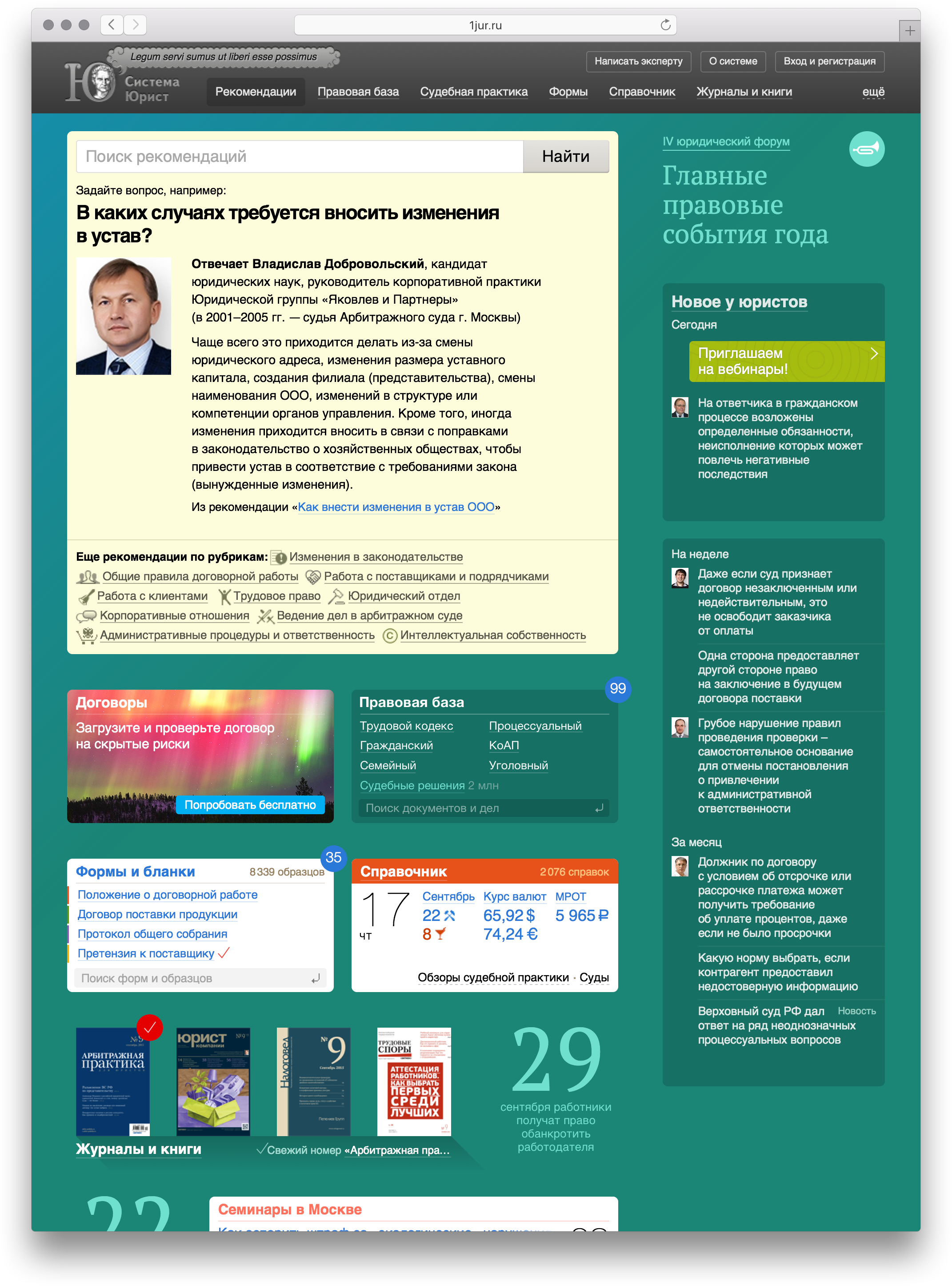 В бюро унифицировали и обновили главные страницы справочных систем Актиона в связи с переходом на общую технологическую платформу. Чисто сервисные главные страницы сделали шаг к использованию редакционных возможностей Актиона. Одно из нововведений — вынесенные новости, цитаты и фактоиды для управления вниманием и усиления интереса: |