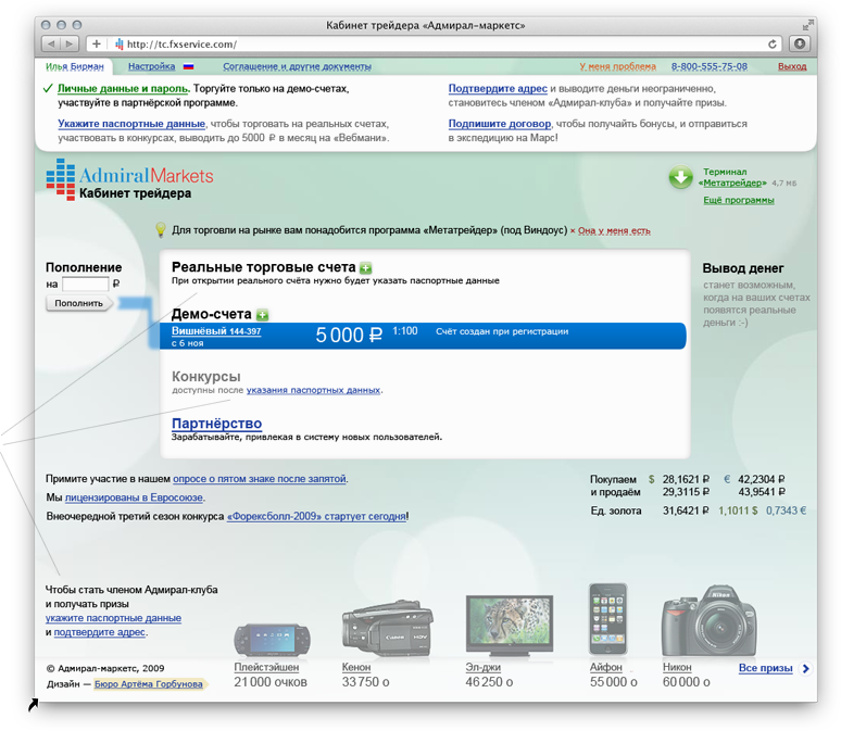 В бюро создан новый интерфейс кабинета трейдера, где открывают счета и управляют деньгами: |