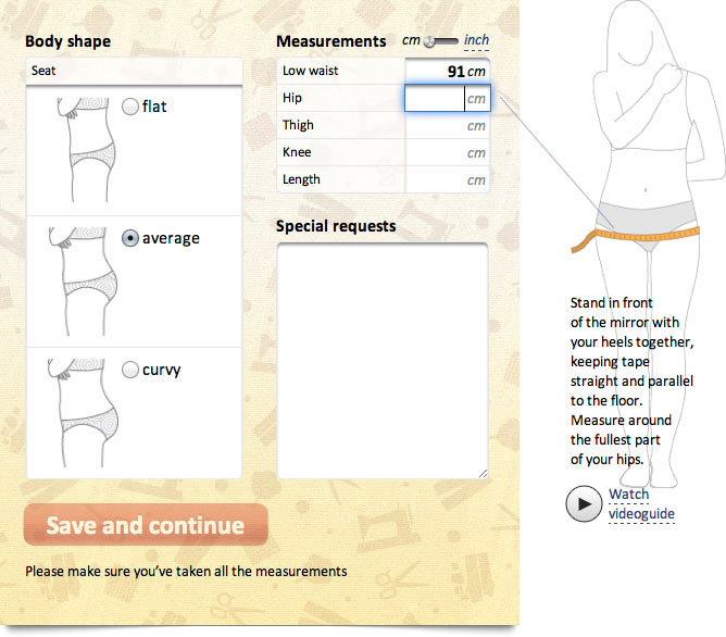 А тем, кто хочет, чтобы джинсы сидели безупречно, сайт помогает точно снять мерки: |