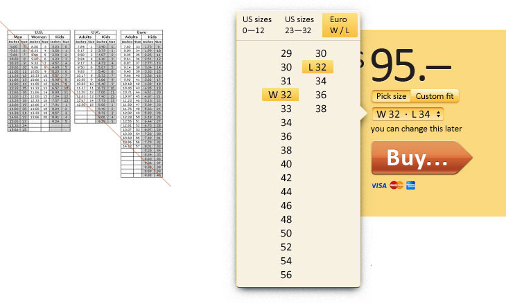 Покупатели выбирают размер в привычной системе без сверки с таблицами: |