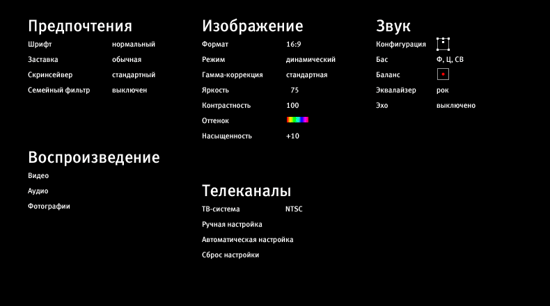 Экранные меню |