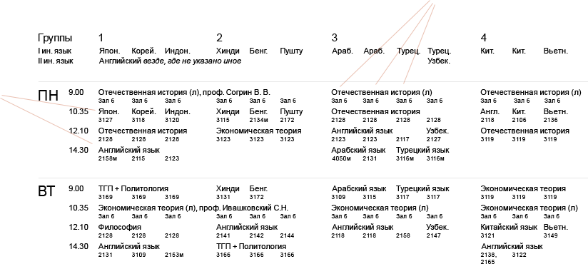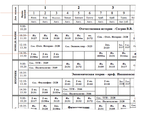 БылоФрагмент учебного расписания факультета МО: |