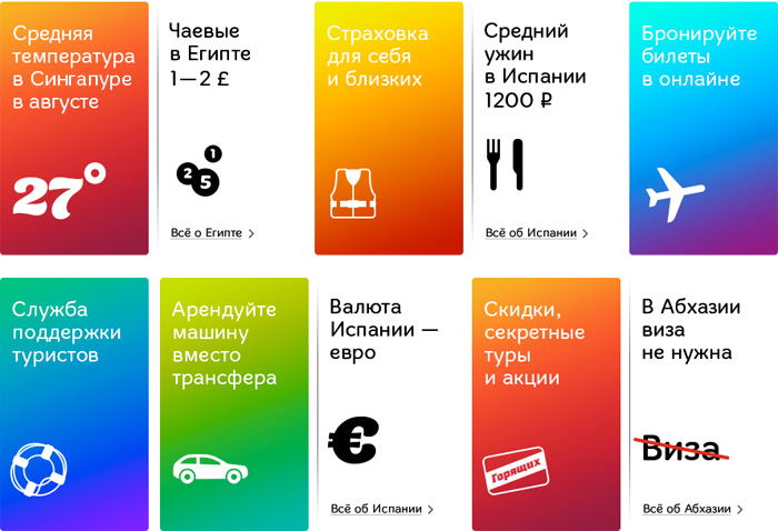 Рекомендации туров разбавляются полезными фактами о предстоящем путешествии: