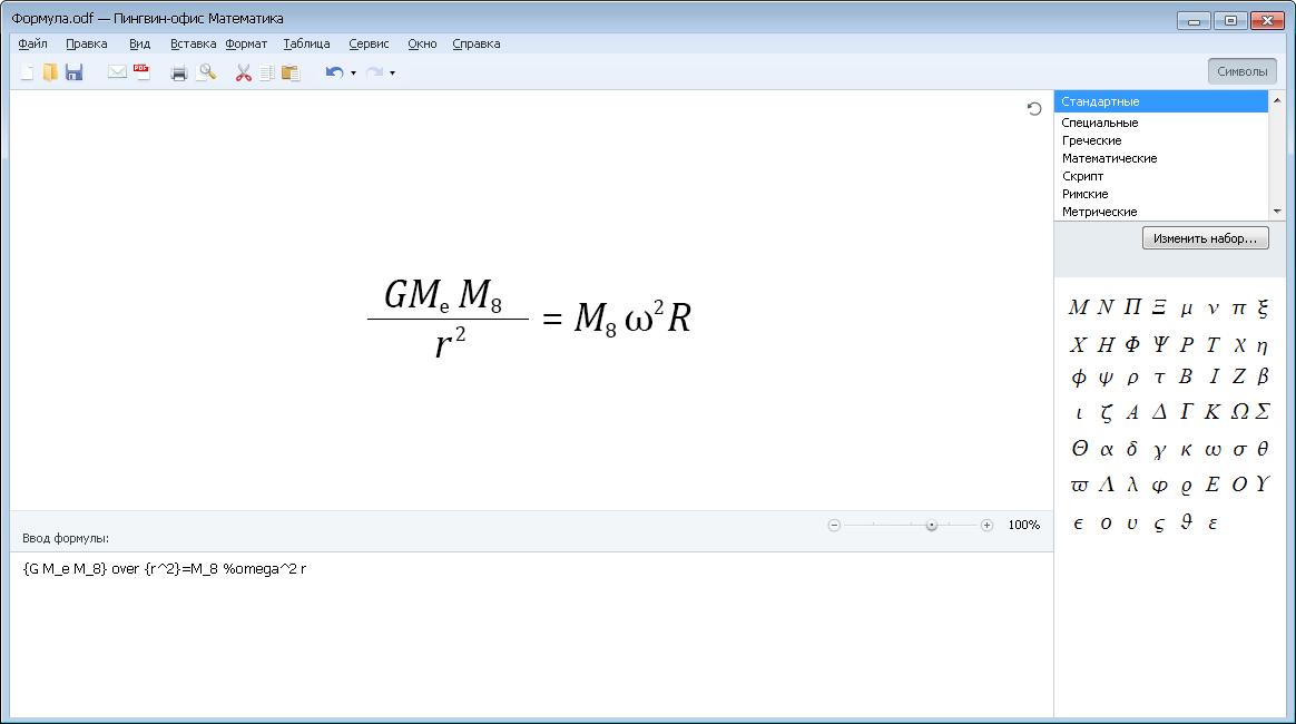 Редактор формул «Математика»: |