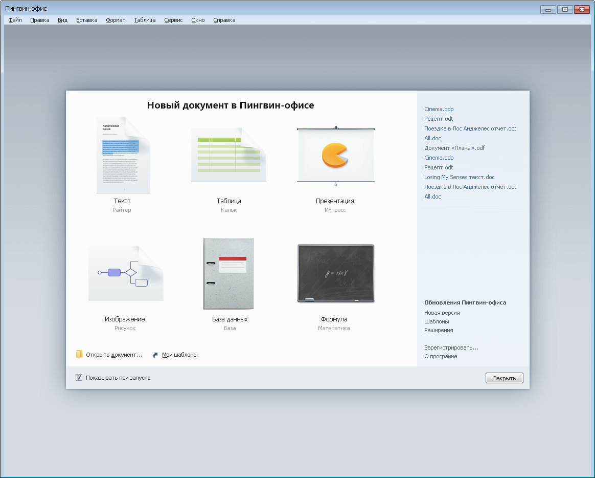 Экран выбора типа документа: |