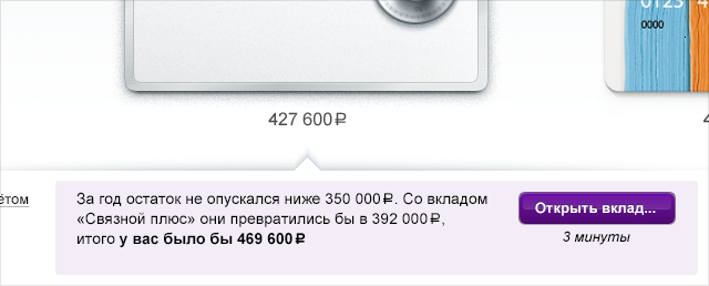 Традиционно сайты банков рекламируют продукты, интернет-банки — обслуживают клиентов. Интернет-банк Связного устраняет это искусственное разделение и рекомендует продукты клиентам прямо в интерфейсе: |