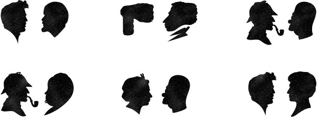 Заглушки в виде пятен Роршаха, появлявшиеся перед открытием сайта, составлены из тех же силуэтов. Кстати, их тогда никто не разгадал: |