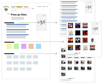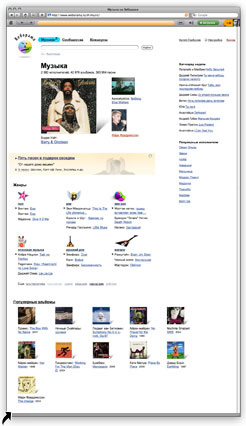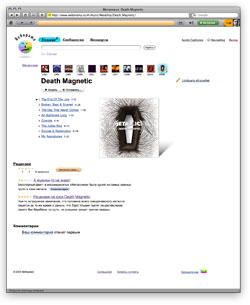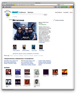 Страница группы содержит описание, участников, предшественников и последователей, альбомы, песни, клипы, рецензии