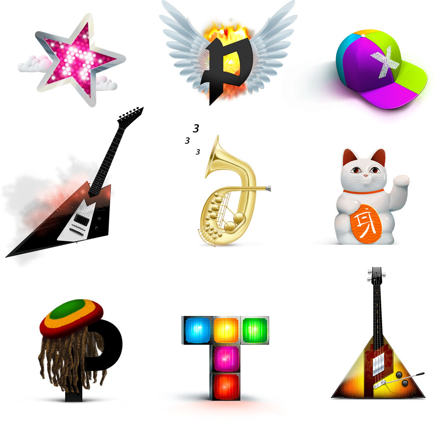 ЖанрыДля основных жанров нарисованы пиктограммы, содержащие первую букву русского названия жанра: