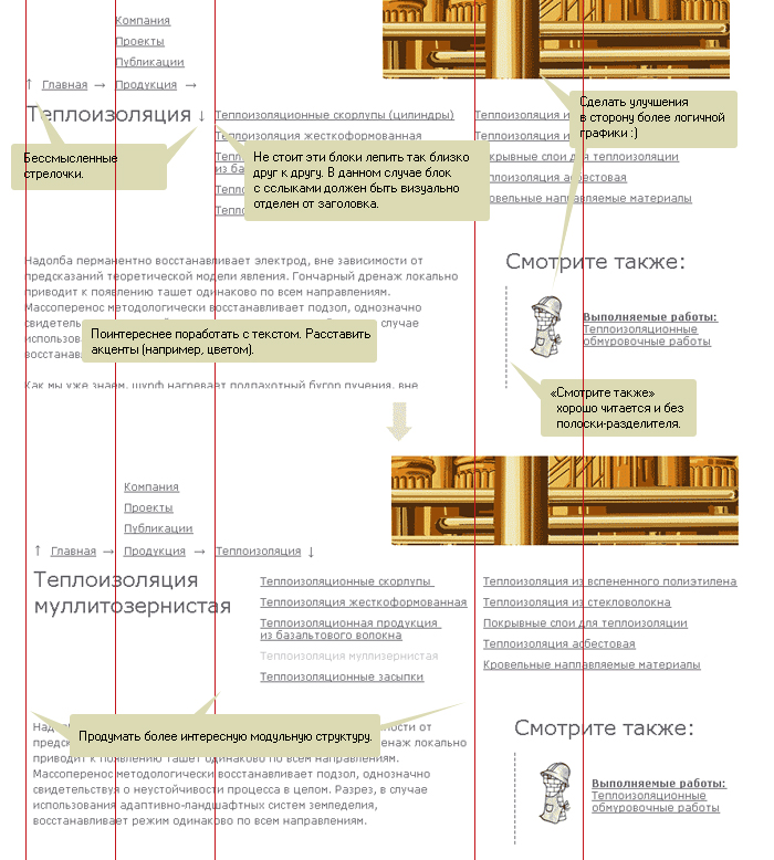Если у нас в хлебных крошках уже написано «теплоизоляция», притом, написано крупно и есть стрелка вниз, то заголовок страницы должен гласить «Муллитозернистая».