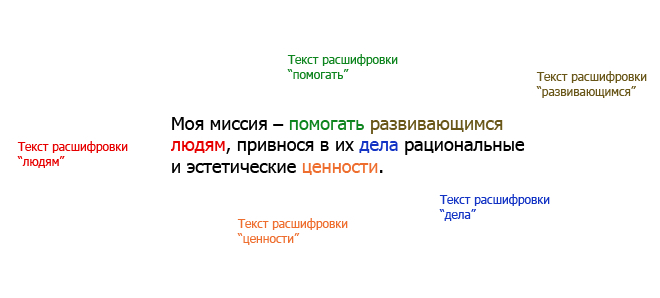 Я бы предложил такой вариант: «Моя миссия — помогать людям достигать лучших результатов, привнося в их дела рациональные и эстетические качества». Вполне созвучно миссии бюро.
