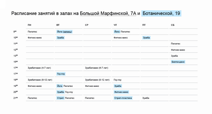 Что будет с клеточками, когда в один день совпадут «Zumbatomic (4⁠—7 лет)» и, например, «Фитнес‑микс?»