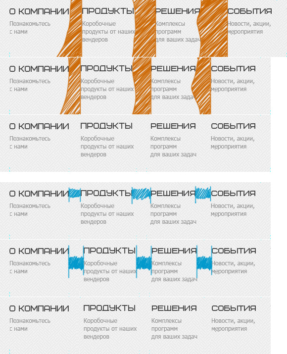 Никто нам не запретит и сделать наоборот: выровнять высоты блоков, а не ширину колонок. Это, скорее, бумажный приём, чем экранный, но вполне допустимый в предсказуемых блоках, как наше меню: