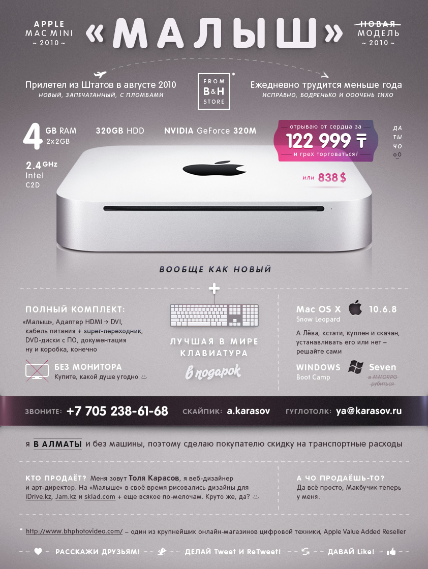 Мне кажется, что причиной успеха стала хорошая цена или удачное стечение обстоятельств. Вряд ли кто‑либо купил бы у Эпла компьютер, если бы компания просила за него ту цену, которую просит, и подавала вот так. Продуктовые страницы Эпла наполнены большими сочными фотографиями, графиками, заголовками и текстом, описывающими пользу. Компания продаёт нам образ и мечту, а не технические характеристики. Ваше объявление выглядит дёшево и неинтересно, не вызывает эмоций и доверия. Тому есть несколько причин.