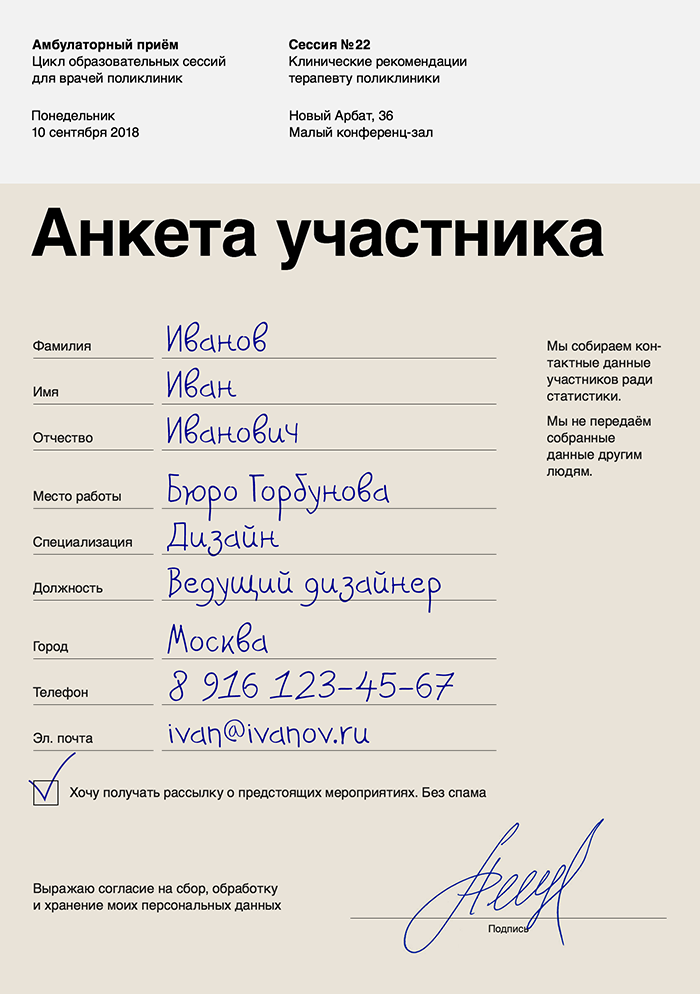 Проверим, как будет выглядеть заполненная анкета: