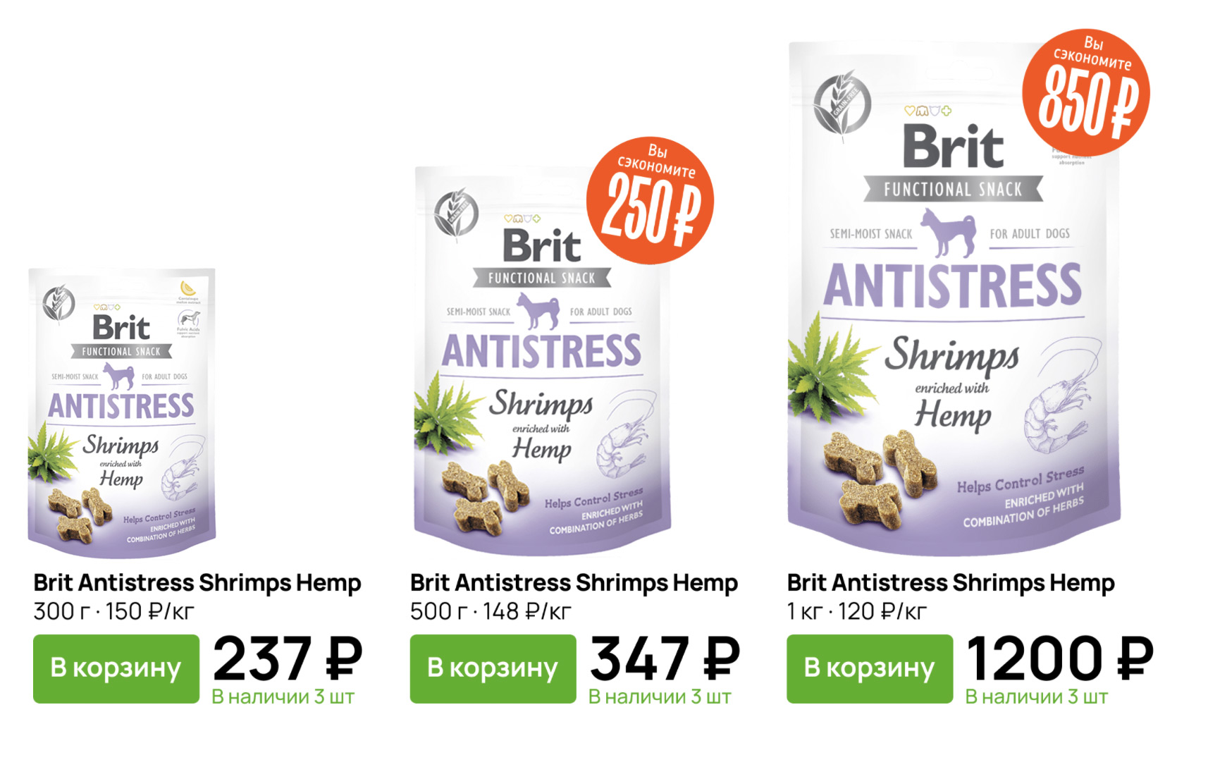 Если же штука здесь только для информирования, то не до конца понятно, как это будет работать. Как понять, сколько всего будут стоить 10 килограммов? Что покупатель должен сделать с карточкой прямо сейчас, если хочет пачку побольше? Почему необходимо показать всё разом в одной карточке, а не поставить просто рядом три отдельных карточки для разного размера упаковок?